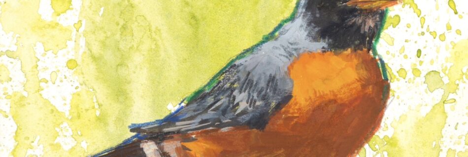 Robin Redbreast • 5×7, gouache and colored pencil on illustration board, $150