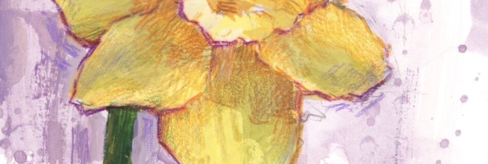 Daffodil • 5×7, gouache and colored pencil on illustration board, $150