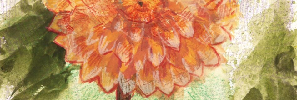 Dahlia • 5×7, gouache and colored pencil on illustration board, $150